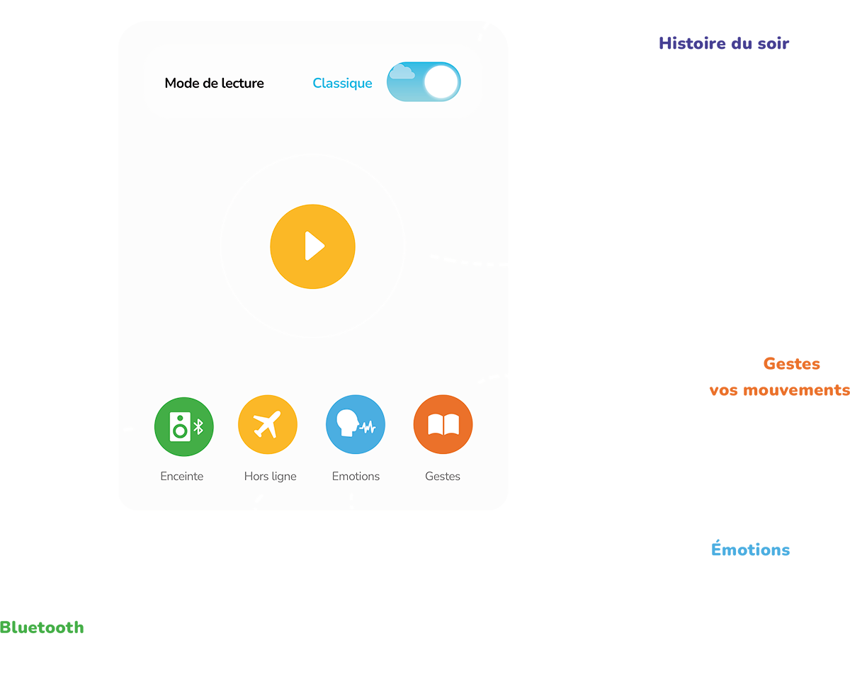 Lisez l’histoire à voix haute et tout au long de votre lecture le livre s’enrichira de sons et de mélodies qui vous accompagneront dans votre aventure.